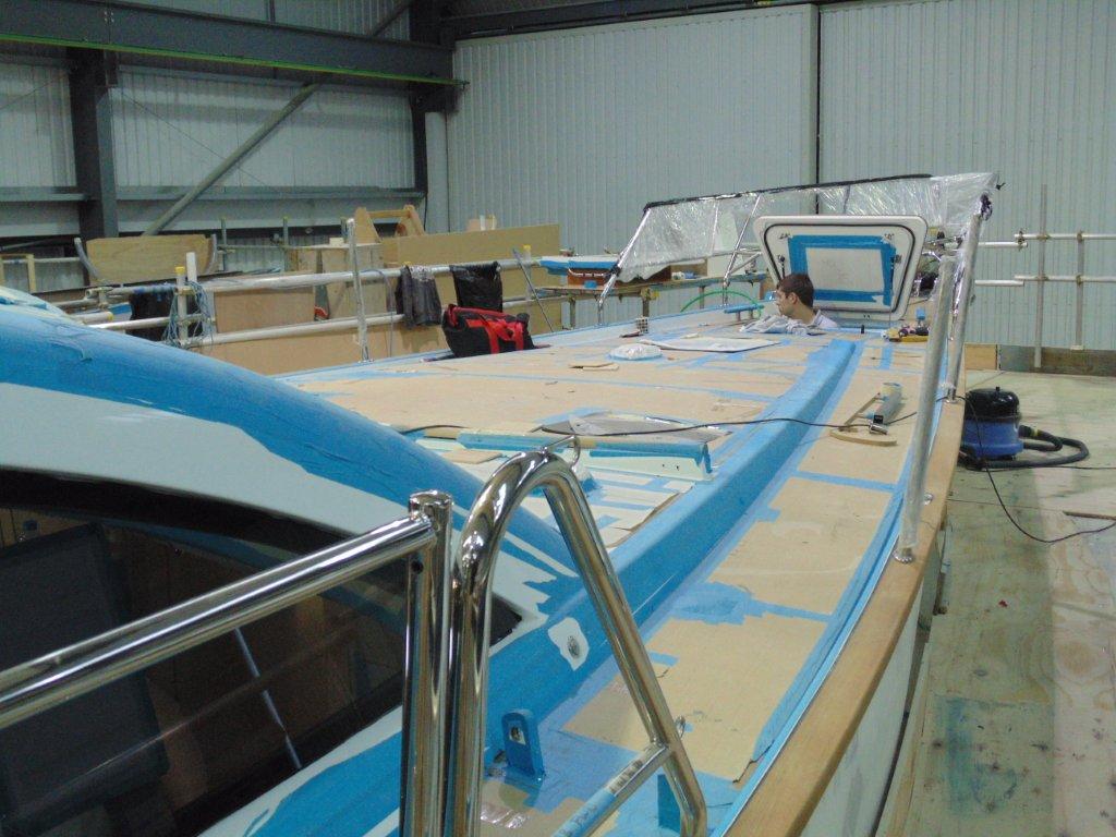 Heute gibt es wieder ein paar aktuelle Bilder. Wie ihr sehen könnt, ist der Innenausbau schon recht weit. Große Teile der schützenden Abdeckungen sind bereits entfernt und so kann man die Einbauten gut erkennen. Auch an Deck geht es weiter. So wurden z.B. die beiden Steuerstände schon fast fertig eingebaut und die Davits angebracht.