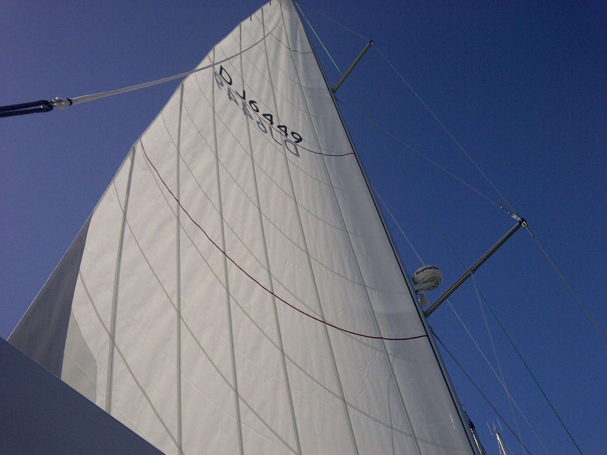 Having to watch the completion of one’s ship from a distance is really annying. You never know how things look like on site and whether things are done right as you want it. With this you are even happier to receive current pictures … like today. The guys from Elvstom mounted the sails and sent us pictures of that right away. Really great service! Now we are even more anxious to set sail.