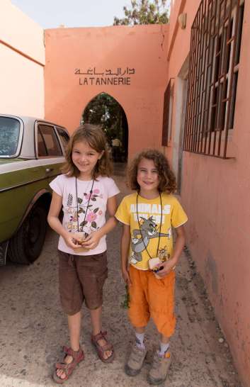 Die Mädchen haben ein kleines Ledertäschchen im Gebershop bekommen