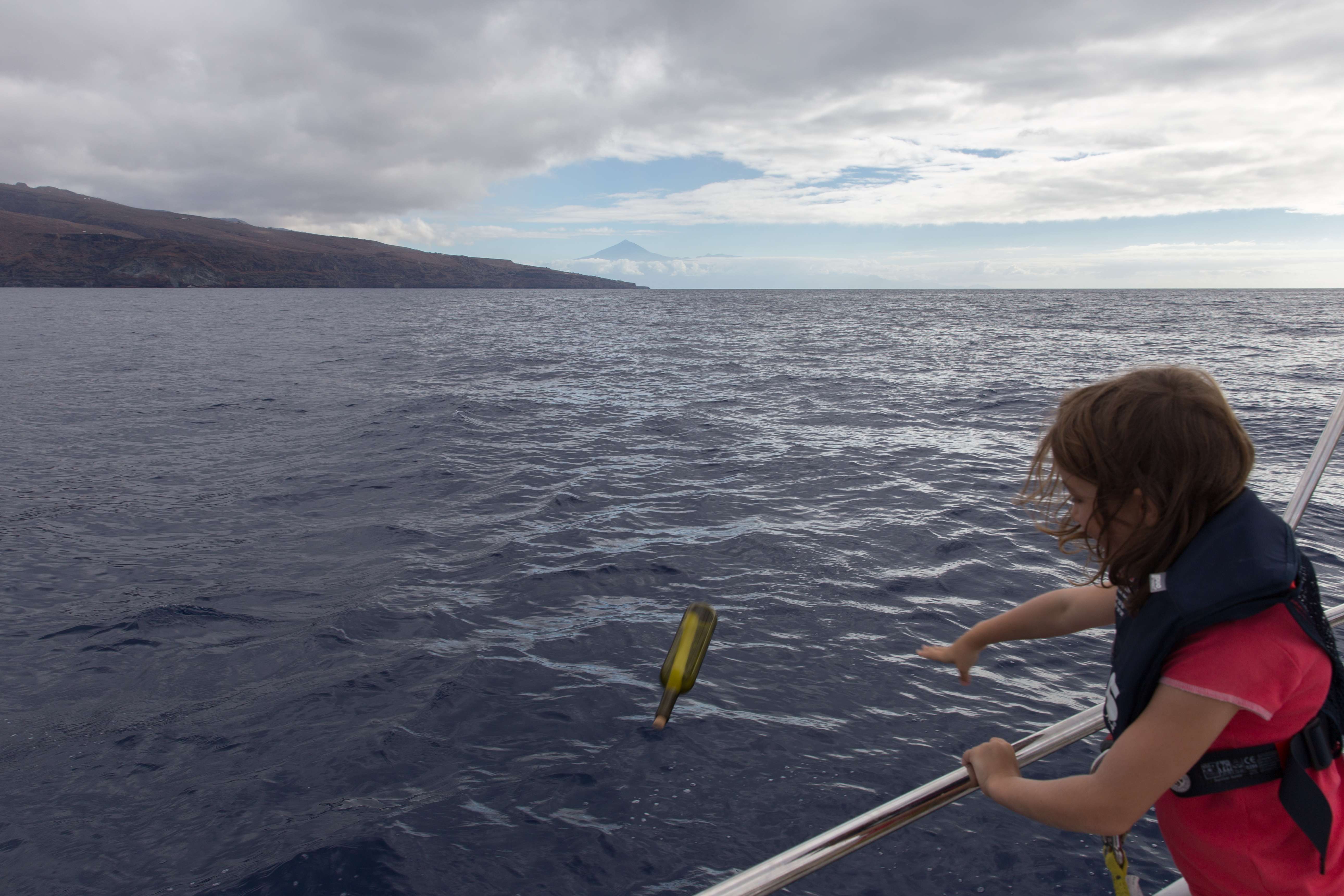 Franka schickt zwischen La Gomera und El Hierro eine Flaschenpost auf Reise