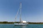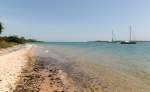 Die Einfahrt zum Ankerplatz war mutig. Es ging in einen Kanal, der nicht auf der Seekarte verzeichnet ist. Wir hatten uns im Vorfeld Satellitenbilder besorgt, um die Einfahrt zu finden. Mit GoogleEarth hat man einen guten Helfer. Um uns herum schäumte das Wasser an den Sandbänken. Natalya stand am Bug und hielt Ausschau. Dank guter Teamleistung sind wir dann sicher angekommen und ankern direkt vor dem Strand.
