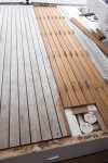 Seither verbringen wir viel Zeit mit dem Einbau der hierher geschafften Ersatzteile. So wurden Wasserleitungen neu verlegt, Badeleitern fest angebracht, Batterien ausgetauscht und allem voran das Teakdeck repariert. Und ist das ein frustrierendes Erlebnis! Hier in Brasilien kann ja jeder alles … zumindest dem eigenen Bekunden nach. Leider merkt man immer erst im Nachhinein, dass dem nicht so ist. Wir wollten ja eigentlich ein paar Tage in den nahe gelegenen Nationalpark fahren, sind aber erst mal hier geblieben. Zwar hat man uns gesagt, dass wir schon fahren können und das Teak in der Zwischenzeit sauber verlegt wird. So ganz wollten wir dem Braten aber nicht trauen. Zu Recht! Immer wieder musste Thomas korrigierend eingreifen (teilweise leider zu spät) und das Internet konsultieren, wie man denn nun richtig Teak verlegt. Heute sollten die Fugen vergossen werden. Leider hat der Typ keinerlei Erfahrung mit dem zu verwendenden Sikaflex. Das ist halt nicht nur einfaches Silikon, sondern eine Vergussmasse, die dann auch schön flüssig ist. Er kam damit gar nicht zurecht und hat mit der Spachtel auch wie wild daran rum korrigiert. Thomas hat ihn dann mit den Verarbeitungshinweisen des Herstellers konfrontiert. Ende vom Lied: Alle Fugen müssen neu gemacht werden. Wie frustrierend! Jetzt wird erst mal neues Sikaflex aus Sao Paulo bestellt. Nächste Woche geht das Drama dann weiter.
