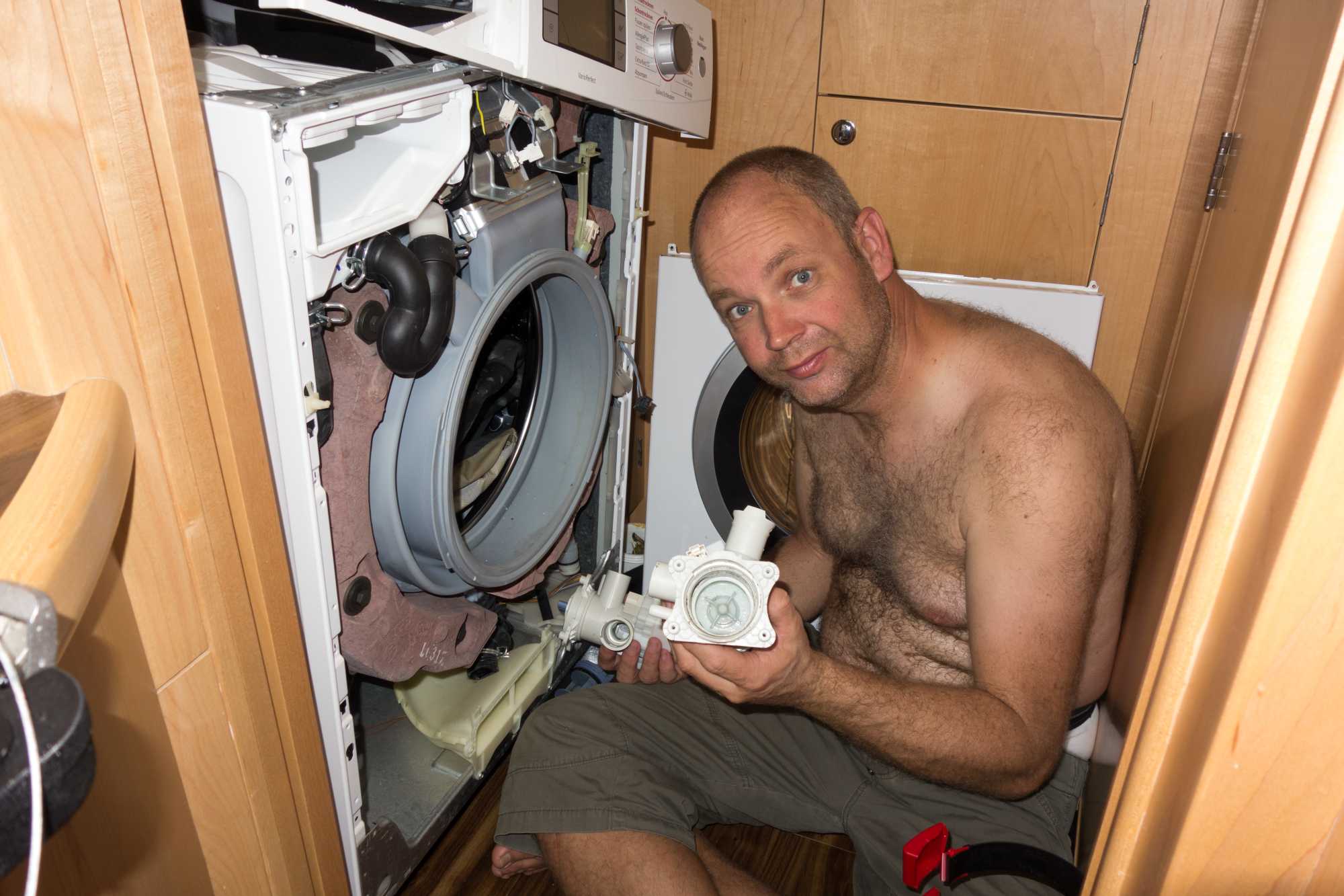 Thomas bei seiner Lieblingsbeschäftigung – Basteln an der Waschmaschine