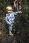 Aber auch ohne Sprache war es toll, den Wald zu erleben. Eine Vielzahl an Bäumen, kleine und große, mit Blattwurzeln oder Ranken. Bromelien in unterschiedlichen Formen und Größen – teilweise Handteller-groß bis hin zu mehreren Metern Durchmesser. Moose und Gräser wuchsen an den Bäumen und Büschen. Alles war feucht und leicht modrig. Während des Spaziergangs regnete es auch … daher wohl der Name „Regen“wald 😉 Wir fanden Früchte und Pilze. Teils ging der Weg steil den Berg hinauf, teils über glitschige Stege über kleine Bäche. Auch Arvid hatte seinen Spaß und spazierte fleißig mit. Zum Abschluss grüßte noch ein Regenbogen über dem gerade durchwanderten Wald. Ein rundum gelungener Ausflug.