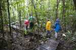 Dort trafen wir doch tatsächlich eine Handvoll Ranger an. Freundlich wurden wir begrüßt und gebeten, uns in die Gästeliste einzutragen. Da sahen wir, dass der letzte Gast vor drei Tagen hier war. Das ist also wirklich Tourismus abseits des Mainstream. Auf die Frage, ob wir in den Wald könnten, bekamen wir die Antwort, dass das nur in Begleitung ginge. Also sind wir mit zwei Rangern in den Regenwald gelaufen … einer voraus, einer hinten an – damit ja keiner verloren geht. Sie erzählten uns immer wieder interessante Dinge über den Wald und die Pflanzen, allein so richtig viel verstanden wir dann leider auch nicht.