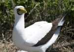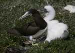 Auch wenn die Inseln der Abrolhos recht klein sind, gibt es doch einiges zu entdecken. Heute haben uns die Ranger des Parks zu einem Landgang auf Siriba eingeladen. Eigentlich ist die Insel ein größerer Felsen der mit ein paar flachen Bodendeckern bewachsen ist und auf dem ganze zehn Bäume stehen … neun Palmen und ein etwas höherer Busch. Nun, das eigentlich interessante sind die vielen Vögel die dort brüten. Schon beim Anlanden begrüßte uns ein neugieriger Jungvogel. Klar zu erkennen an seinem grauen flaumigen Gefieder war er erst ein paar Wochen alt. Auch als wir uns ihm bis auf einen Meter nähern ließ er sich nicht aus der Ruhe bringen. Er schaute einfach interessiert zu, wie wir durch Felsen stapften.