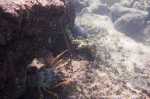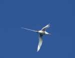 Ganz interessant fanden wir übrigens die Nester der Tropikvögeln. Sie suchen sich Felsspalten über überstehende Felsen und legen dort geschützt ihre Eier. Die inzwischen geschlüpften Jungen, die wir heute sahen, saßen ganz ruhig auf dem Boden und rührten sich nicht. Durch ihr Gefieder waren sie im Halbdunkel gut getarnt.