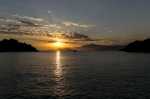 Am nächsten Tag das gleiche Spiel in einem noch interessanterem Setting. Die Bucht an der Ilha de Macacos ist umgrenzt von drei kleinen Inseln. Ankern kann man auf sandigem Grund bis sehr nahe an das Ufer. So sehen wir bereits bevor unser Anker fällt Rochen und Fische unter uns. Es ist noch früh am Vormittag, so dass wir die kleine Bucht fast für uns alleine haben und ungestört Schnorcheln und dabei auch einige Seesterne beobachten können. Gegen Mittag beginnt dann das gewohnte Spiel: Ein Motorboot nach dem anderen fährt mit Vollgas bis fast an den Strand heran, stoppt ab und wirft Anker und Heckanker, um dann gleich Musik anzuschalten und den Grill anzuwerfen. Am frühen Nachmittag ist der kleine Strand fast nicht mehr zu sehen … Boot an Boot, teilweise im Päckchen. Es werden Jetskis und Dinghys zu Wasser gelassen und damit in Hochgeschwindigkeit herum gefahren. Es gibt auch Dienstleister, die sich auf das Treiben eingestellt haben. Eine mobile Küche bietet warme Speisen an und liefert direkt ans Boot. Es gibt Bier und kalte Getränke und sogar Eis wird vom Schlauchboot angeboten. Den Sonnenuntergang genießen wir wieder alleine.