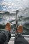 Abends ging es dann wieder richtig zur Sache. Der Wind frischte auf, wir refften schrittweise die Segel. Am Schluss blieben wir im vierten Reff, um die 35 bis 40 Knoten Wind abzusegeln. Vorhergesagt war das natürlich wieder mal nicht – im Wetterbericht stand etwas von 4 bis 5. Nicht zum ersten Mal hatten wir das Gefühl, dass bei der Vorhersage 4 bis 5 bft eher 45 kn zu erwarten sind. Glücklicherweise kam der Wind nicht von vorne, so dass wir Halbwind segeln konnten. Unangenehm war allerdings die Welle. Im flachen Wasser baute sich schnell ein hoher Hack auf. Es dauerte nicht lange, da war einigen an Bord sehr übel – inkl. Skipper, der sich schnell von seinem Mageninhalt trennen musste und dann später immer mal wieder prüfen musste, ob sich nicht doch noch irgendwo etwas im Magen versteckte. Der versprochene Fernsehabend mit “Cars” wurde abgesagt, die Kinder retteten sich vor der Seekrankheit in den Schlaf. Ganze 12 Stunden mussten wir den Starkwind ertragen. Die Wellen schlugen kräftig gegen das Boot, besonders wilde stiegen ins Cockpit ein … dann wurde es allmählich weniger und die See ruhiger.