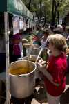 Am nächsten Tag ist Entspannung angesagt. Wir haben in der letzten Zeit so viel gesehen, sind so viel gereist, dass alle eine Ruhepause gut gebrauchen können. Gegen Mittag begeben wir uns auf die Suche nach einem Mittagessen. Als erste Möglichkeit entdecken wir im nahe gelegenen Park einige Zelte mit großen Blechtöpfen, in denen unterschiedliche Arten von Eintöpfen schmoren. Um die Töpfe stehen die Einheimischen Schlage. So schlecht kann das doch gar nicht sein. Aber überall ist Fleisch drin, eher nichts für uns. Wir laufen weiter durch die Stadt. Auf dem Plaza de la Democracia spielen Musiker, für Zuschauer stehen Stühle bereit. Ein älteres Indiopaar in traditionellen Trachten tanzt. Einer der Musiker spielt Harfe. Das verbindet man nicht wirklich mit indianischen Klängen. Aber wer auch immer dieses Instrument hierher zum ersten Mal gebracht hat, hatte viele Nachfolger. In Asuncion gibt es sogar ein Harfenmuseum, das wir später entdecken. Cafes mit günstigen Angeboten für ein Mittagessen gibt es auch an jeder Ecke. Nach zwei Tagen in Buenos Aires erscheinen ihre Angebote als ein Schnäppchen.