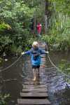 Am nächsten Morgen probieren wir einen anderen Wanderweg aus. Über eine schmale Hängebrücke überqueren wir den kleinen Fluss. Das braune Wasser fließt langsam und still. Es wäre sicherlich schön im Kanu den Fluss runter zu fahren, aber Thomas will nicht von den ganzen Moskitohorden, die durch Mangel an Touristen ganz hungrig herumschwirren, ausgesaugt werden. Der Weg führt weiter entlang eines Sumpfes. Als ein großer Wasservogel im Dickicht auffliegt, schrecken wir uns zusammen. Die nächste Hängebrücke ist vom Wasser überschwemmt. Keiner will aufgeben. Nach kurzem Zögern – was mag da im braunen Wasser alles drin sein – ziehen wir die Schuhe aus und waten zum Teil knietief auf den glitschigen Holzplanken durchs Wasser. Wie blöd, dass 100 Meter nach der Brücke trotzdem Schluss ist. Der ganze Weg ist überschwemmt und hat sich in einen breiten Bach verwandelt. Wir laufen wieder zurück, wandern noch mal auf dem Weg von gestern weiter, und entdecken auch auf dem alten Weg neue Sachen.