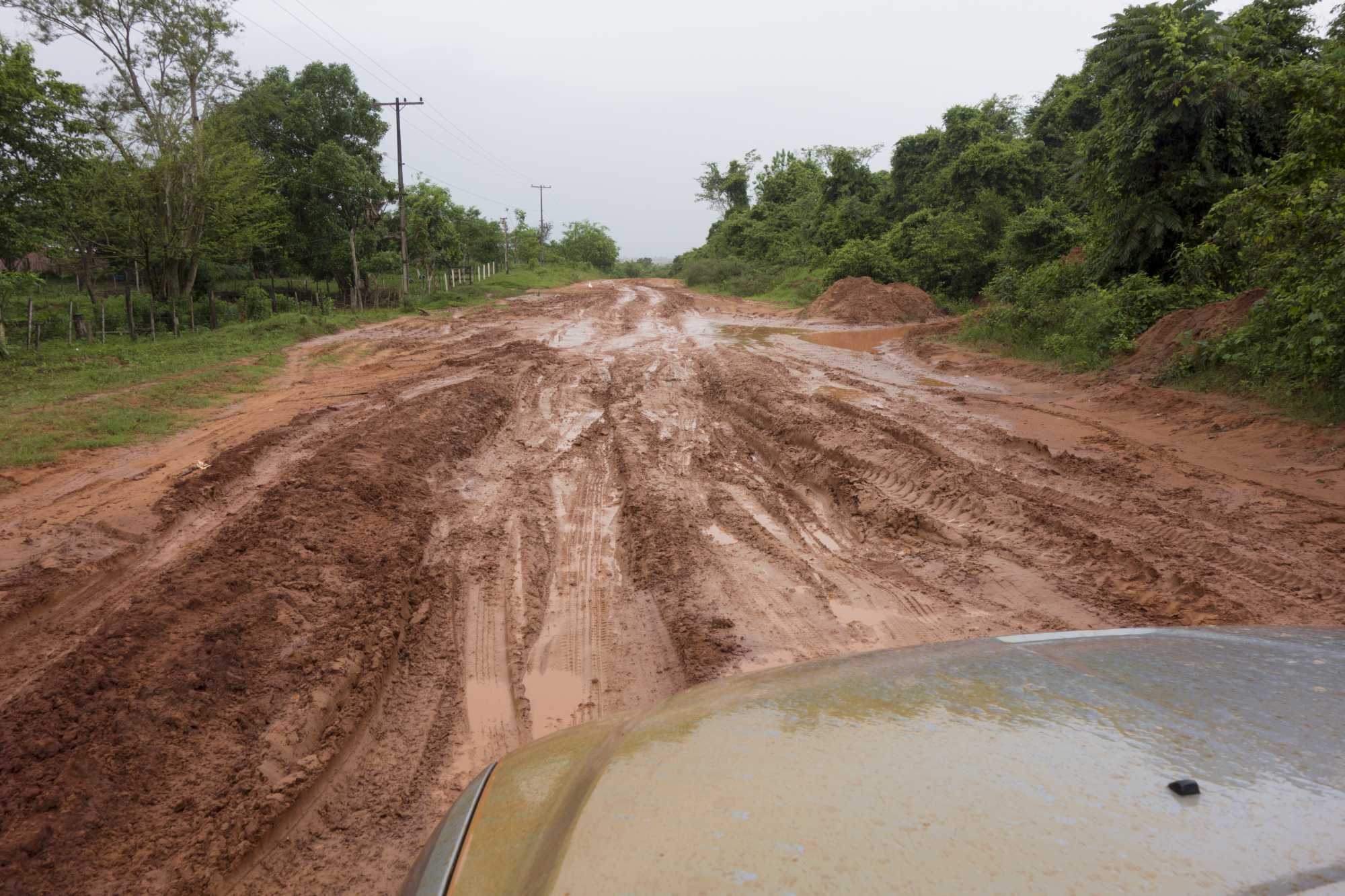 Die Straße wird schlecht … und hier in diesem Loch sind wir auch stecken geblieben