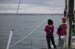 Einige Wale haben wir bereits von unserem Ankerplatz aus springen sehen. Wir warten auf einen Tag mit leichtem Wind und strahlendem Sonnenschein und probieren unser Glück. Mit wenig Segelfläche fahren wir langsam aus dem Hafen. Schon bald hören wir den ersten Blas. Einer der Wale turnt fast direkt im Hafen. Der lange Rücken gleitet hinter unserm Boot durchs Wasser, kurz kommt die Fluke hoch, und weg ist er – abgetaucht. Kaum ist der erste Wal weg, ist schon der nächste dran. Die Kinder sind ganz aufgeregt, laufen mit einem Fernglas bewaffnet auf dem Deck um das Boot herum, um den besten Aussichtspunkt zu finden.