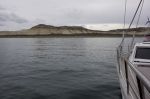 Die Hauptattraktion des Golfo Nuevos, in dem wir uns gerade befinden, sind die Glattwale, die sich hier jedes Jahr zur Paarung und Geburt ihrer Jungen mit über 1.000 Tieren versammeln. Umso größer ist die Enttäuschung als wir erfahren, dass die Buchten im Norden der Golfo Nuevo, wo sich die Tiere normalerweise versammeln, für die Navigation komplett gesperrt sind und eine Ausnahmegenehmigung unter keinen Umständen, nicht mal bei schlechtem Wetter, erbetet werden kann. Es kostete uns einiges an Strapazen in den Golfo hineinzufahren. Eine 100km lange Busfahrt nach Puerto Pyramides mit einer anschließenden Bootstour zu den Walen ist eine Alternative. Allerdings ist sie zeitaufwändig und teuer. Unser Boot liegt hier auch so ungeschützt, dass wir es nicht wirklich gerne über einen ganzen Tag lang alleine lassen würden.