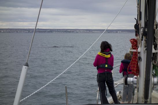 Zwei Wale direkt voraus