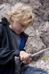 Arvid ist zum großen Abenteuer geworden. Er will über Stock und Stein alleine laufen und macht das ganz geschickt. Er schleppt dabei gerne große Steine mit sich herum. Wieder unten angekommen paddelt Vsevolod mit Arvid zusammen lange in unserem Schlauchboot, und sie erkunden die verstecktesten Winkel des Fjordes. Am Abend steigen Natalya und Thomas auf den Berg um das Panorama im Licht der untergehenden Sonne zu beobachten. Bis zum richtigen Sonnenuntergang müsste man eigentlich noch länger warten. Wir sind schon so weit südlich, dass sie Sonne erst sehr spät hinter dem Horizont verschwindet.