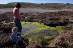 Die nächsten Tage verbringen wir beim Wandern und Spielen am Strand. Außer Guanakos, die wir recht häufig sehen, treffen wir auf verwilderte Schafe. Es wird zum Sport, die gesichteten Tiere zu zählen. An einem Tag kommen wir auf 25 Guanakos und 12 Schafe. An einem der Strände wollen Franka und Vsevolod tatsächlich schwimmen gehen. Geschwind ziehen sie ihre Badeklammoten an, danach stockt es. "Ui, ist das Wasser kalt". Vsevolod bringt es so weit, ein Mal richtig einzutauchen und ein paar Schwimmbewegungen auszuführen. Dann ist das Kapitel "Baden" abgehakt. 14°C Wassertemperatur ist halt dann doch etwas zu frisch. Als wir nach der Wanderung zurück zu unserem Dinghy kommen, liegt ein Seeelefantenjunges direkt vor dem Schauchboot und schaut uns mit seinen riesigen Kulleraugen an. Das Tier ist so gut getarnt und liegt anfangs so bewegungslos, dass man es auch aus relativer Nähe für einen grauen Felsen halten könnte. Es hat keine Angst vor Menschen und sieht so plüschig aus, dass unsere Kinder es am liebsten streicheln würden.