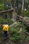 Da es keine Fähre nach Argentinien gibt, tauchen regelmäßig Rücksacktouristen am Pier auf, auf der Suche nach einer Möglichkeit nach Ushuaia zu kommen. Ein oder zwei kleine argentinische Boote scheinen damit Geld zu verdienen, billig ist so eine Passage wohl nicht. Soweit es uns bekannt ist, liegt der Preis etwa bei 100 Dollar pro Person. Die Touristen werden vom südlichsten Trail der Welt nach Puerto Williams gelockt. Das ist ein 5 Tage langer Treck von 30 Kilometern, der rund um die Insel Navarino führt. Da wir kein Zelt haben, ist es für uns nicht wirklich eine Option. Aber wir laufen trotzdem die ersten fünf Kilometer des Weges, bis zum Gipfel des Cerro Bandera auf 620 m. Der größte Teil der Strecke ist durch den Wald gut geschützt. Der Regen und der Wind bleiben in Blättern stecken. Da der Wald doch relativ licht ist, sprießen aus dem Waldboden viele Blumen. Unter anderem entdecken wir zwei Orchideenarten. Unzählige umgestürzte, entwurzelte und zersplitterte Bäume zeugen von den rauen Bedingungen, die hier herrschen können.