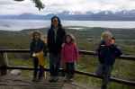 Langsam nähern wir uns der Baumgrenze. Die Bäume werden dünner und kleiner. Auf 600 Metern ist Schluss – kein Baum, kein Strauch – nur Mooshügeln können hier dem harten Wetter trotzen. Das Wetter ändert sich in zehn Minuten Takt. Es gibt einen Schneeschauer, dann scheint wieder die Sonne. Kurz darauf kommen niedrige dunkle Wolken, schnell verschwinden auch sie. Graupel fällt vom Himmel bei strahlendem Sonnenschein. Unsere Kinder entdecken ein ausgedehntes Schneefeld und toben ausgelassen im Schnee. Lange wollen wir aber nicht oben bleiben. Der Wind peitscht uns Graupelkörner ins Gesicht und kriecht unter die Kleider. Als wir zurück laufen, kommen uns einige schwer bepackte Wanderer entgegen. Jeder trägt einen schweren Rucksack. Mit Kälte, Regen und völliger Abgeschiedenheit braucht man einiges an Ausrüstung, um sicher durch die Wildnis durchzukommen. Trotz der monströs aussehenden Rücksäcken, sind wir neidisch auf so eine tolle Wanderung.