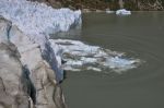 Wir setzen uns zu einem wohl verdienten Lunch hin. Vsevolod ist glücklich Poppy, den Hund von Mollymawk, bei sich zu haben und krault sie ausgiebig. Das Essen wird durch lautes Grollen unterbrochen. Perfektes Timing – der Gletscher kalbt! Ein großer Brocken löst sich und stürzt mit lautem Getöse direkt vor unseren Augen ins Wasser. Das Wasser kocht und sprudelt, eine kleine Welle breitet sich aus und verteilt das Eis im Halbkreis um die Bruchstelle. An manchen Stellen ist das Eis intensiv blau, an manchen grau, ganz locker und wirkt wir ein Metallschwämmchen zum Töpfekratzen. Wir spekulieren darüber woran das liegt, und vor wie vielen Jahren es als Schnee oben auf dem Berg angekommen ist. Genau weiß es keiner von uns.