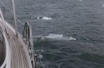 Unschlüssig wie es weiter geht tasten wir uns aus unserer geschützten Ankerbucht im Seno Pia heraus. Sofort werden wir von weißen Pferden auf den Wellen begrüßt. Südwestwind weht uns kräftig entgegen und sperrt das Eis in der Bucht ein, und dabei ist diese Bucht noch richtig breit. Bei so einer Lage sind unsere Chancen durch den wesentlich engeren Garibaldi-Fjord bis zu dem Gletscher durchzukommen eher gering. Die scharfen Kanten der Eisblöcke können hässliche Kratzer in GFK-Booten wie unserem hinterlassen. Wir stellen uns bildlich vor, wie wir nach 10 Meilen Motorfahrt statt des Gletschers nur Schneetreiben im Nebel bewundern oder vom Eis eingeschlossen sind und dann fluchend umdrehen. Wenn wir auch einige Aktionen dieser Art schon hinter uns haben, siegt dieses Mal die Vernunft. Wir verzichten auf ein Gletscherabenteuer. Die nahe gelegene Caleta Alakush ist unser nächstes Ziel.