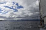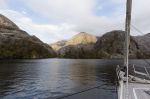 Weil es in der Gegend jede Menge schöner Buchten mit oder ohne Gletscher gibt, sind wir bis jetzt kurze Stücke von höchstens 25 Meilen gesegelt. Dieses Mal entscheiden wir uns für eine für hiesige Verhältnisse lange Strecke von 85 Meilen – nonstop durch den Canal Brecknock. Dieser Kanal ist relativ breit und teilweise Richtung Pazifik offen. Schon allein die Namen entlang des Weges wie Bahia Desolada (Bucht der Verwüstung) klingen nicht wirklich einladend.