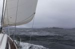 Gleich nach der Abfahrt aus der Caleta Brecknock werden wir im Kanal Cockburn zum ersten Mal herzlich vom Pazifik begrüßt. Von einem langgezogenen Pazifikschwell mit Wellen von 3-4 Metern von der Seite erfasst, gerät das Schiff in gleichmäßiges Schaukeln, was manchen Crewmitgiedern einen Seekrankheitsanfall beschert. Zum Glück können wir nach einer Weile auf einen Vorwindkurs abfallen und damit ist die holprige Strecke schnell zu Ende und es geht allen wieder gut und wir können die allmählich heraus kommende Sonne genießen.