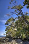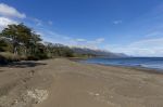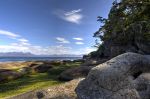 Am Nachmittag fahren Thomas und die zwei Jungs zum Strand. Während die Kinder am Strand buddeln, wandert Thomas zu Spitze der die Bucht unschließenden Halbinsel und bewundert die Natur. Es ist T-Shirt-Wetter. Keine Wolke am Himmel, die Sonne scheint wohltuend auf die Haut. Die die Magellanstraße säumenden Berge leuchten in warmen Farben, die Wälder zu ihren Füßen bilden einen angenehmen Kontrast und der weite Sandstrand rundet das Bild ab. Ruhig pätschert das tiefblaue Wasser. Vor Jahrtausenden wurden die Felsen an der Landspitze durch Gletscher rund geschliffen. Keine scharfe Kante stört das Bild. Kelp hat sich darunter angesiedelt, darüber steile Küsten mit Bäumen, die teils horizontal aus den Felsen herauswachsen. Alles ist friedlich, ruhig, und es gibt keine Spur von Zivilisation. Urlaub für die Seele.
