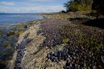 Unser erster Stopp auf dem Weg durch die Magellanstraße heißt Caleta Hidden. Kein Wunder, dass sie so heißt. Man sieht die Einfahrt kaum, muss über eine Meile einen engen Kanal durchfahren und an einer darin liegenden Insel vorbei. Dafür liegt man wunderbar in einem runden Becken am Ende der Bucht, vor einem Kieselstrand. Das Wasser in der Caleta ist meist tief braun. Was für ein Gegensatz zur Caleta Alakush. Dort konnten wir jeden Stein auch in 10 Meter Tiefe deutlich auf dem Meeresboden sehen, ebenso Seesterne und Krabben. Hier beobachten wir nur die auf der Oberfläche treibenden Quallen. Über die Gründe können wir nur Hypothesen aufstellen. Liegt es vielleicht an den Algen, an den gefürchteten mikroskopisch kleinen Organismen, die die Muscheln befallen? Viele Gebiete in Patagonien und Feuerland sind davon betroffen. Obwohl die Buchten voll mit großen Muscheln sind, darf man sie nicht essen. Wer vergiftete Muscheln verzehrt, stirbt mit großer Wahrscheinlichkeit innerhalb von 24 Stunden – ohne dass man medizinisch dagegen etwas unternehmen könnte. Alles was über offizielle Wege auf den Markt kommt, wird vorher auf den Krankheitserreger getestet. Es gilt ein strenges Sammelverbot für Schalentiere an der gesamten patagonischen Küste.
