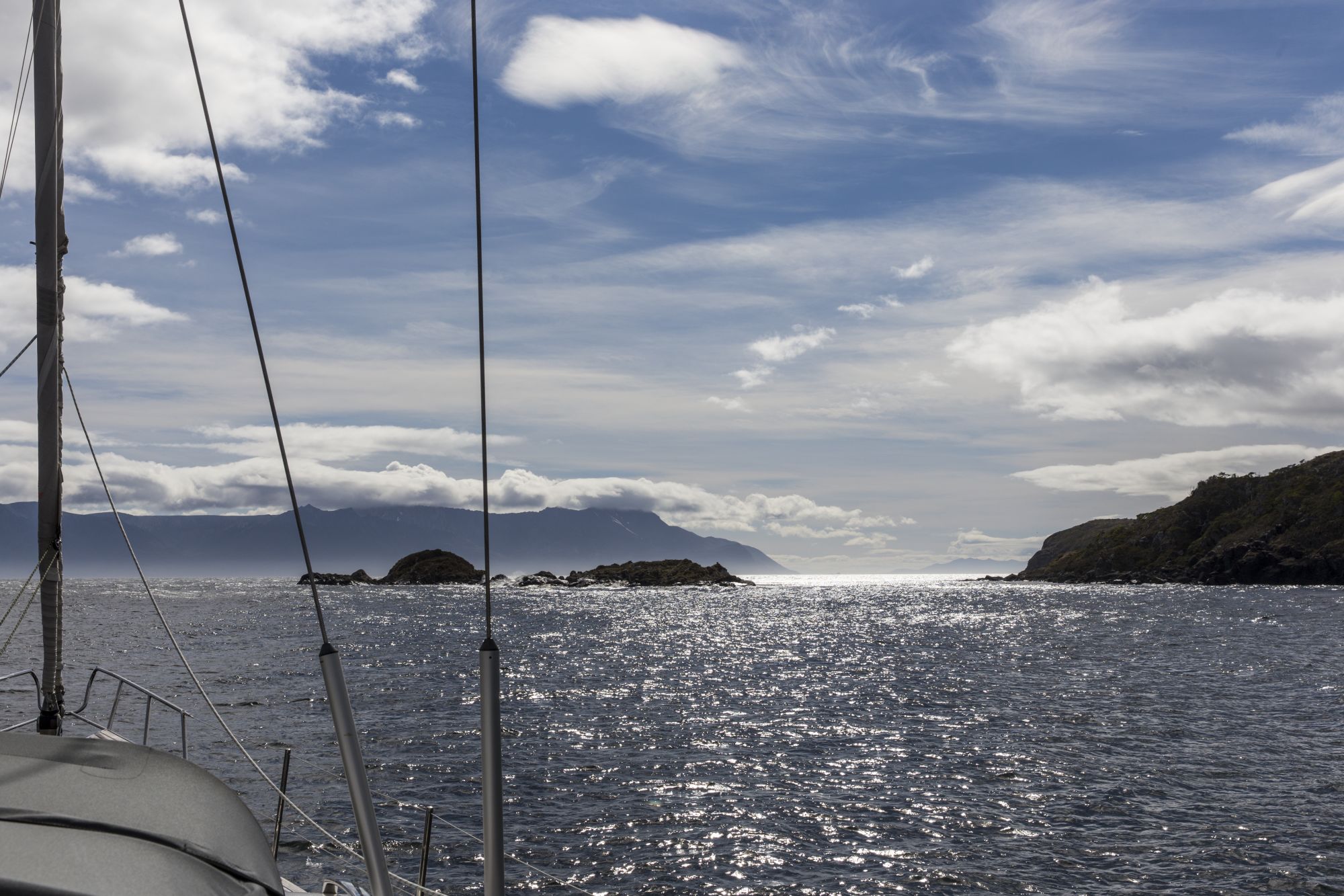 Ausfahrt aus der Caleta Hidden in die Magellanstraße
