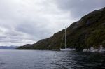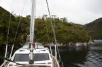 In Pueto Angosto machen wir unsere erste nähere Bekanntschaft mit Williwaws, den Starkwindböen. Schon in unserem Revierführer steht, dass man diesen langgestreckten, engen und steilwandigen Fjord lieber bei gutem Wetter aufsuchen sollte. Wir halten uns an die Empfehlung und fahren an einem perfekten, für hiesige Verhältnisse fast windstillen Tag hinein. Die Fischer haben an einem der Felsen zwei Tonnen angebracht, an denen wir unsere Heckleinen befestigen. Der Anker liegt auf 25 m auf Felsengrund. Das Böse ahnend bringen wir noch eine Bugleine aus.
