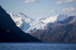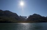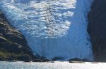 Die Kinder essen zu Abend, die Kleinen gehen ins Bett. Die Großen müssen wach bleiben, um beim anstehenden Landleinenmanöver helfen zu können. Die Strecke ist spektakulär. So viele Gletscher auf einmal! Als wir an einem vorbei fahren begrüßt uns sein eiskalter Atem. Über uns ergießt sich ein Schwall eisiger Luft, als ob jemand einen gewaltigen Gefrierschrank aufgemacht hätte. Das Westufer wird sehr steil und bildet fast eine senkrechte Felswand. Breite Wasserfälle fallen aus großen Höhen herunter. Obwohl die Menge an Wasser, die sie führen, gar nicht klein ist, kommen unten nicht alle an. Der aufkommende Wind zerstäubt sie zu einem feinem Wasserspray und trägt es weg.