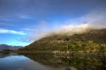 Es ist kaum zu glauben, aber auch an diesem Morgen herrscht absolute Windstille. Der Himmel ist stahlblau, keine Wolke zu sehen. Durch den Canal Smyth zieht ganz langsam eine tief liegende Nebelwolke und spitzt in den Paso Victoria hinein. Knapp über der Wasseroberfläche trennt sie das Blau des Wassers vom Blau des Himmels.