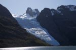 Wir verlassen die Bucht ebenso, um zur nicht weit entfernten Caleta Jaime zu kommen. Doch die ruhige Wetterlage veranlasst unseren Skipper statt der angepeilten Ankerbucht in 10 Meilen Entfernung in einen in Nord-Süd Richtung ausgedehnten Fjord Estero de las Montanas hinein zu fahren. Normalerweise herrscht dort ein starker Nordwind, gegen den man den beim Hineinfahren kämpfen muss. Wo der Wind ist, ist auch Welle… Heute ist alles perfekt still. Wir fahren an den imposanten Bergen vorbei, an den Gletschern, die hoch oben hängen, und an denen, die bis zum Wasser reichen. Je tiefer wir uns in den Fjord hinein arbeiten, desto schöner und schroffer wird die Umgebung.