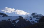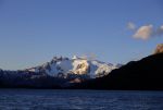 Am Ende des Fjords erhebt sich ein gewaltiger weißer Riese. Vor ihm liegt unser neues Ziel – Caleta Pelagic. Normalerweise ist unser Anker sehr zuverlässig. Es sei denn man ist müde und möchte das Ankermanöver möglichst schnell hinter sich bringen. Dann greift er aus reinem Trotz nicht. Als eine Heckleine schon fest ist, müssen wir sie wieder einholen und umankern. Der zweite Versuch ist erfolgreicher. Die Heckleinen sind schnell angebracht. Natalya bringt in Erwartung schlechten Wetters noch eine Bugleine aus. Dafür muss sie lange Leinenwerfen üben. Die Bäume, die die Leine halten könnten, wachsen an einer steilen Wand, auf die man nicht hochklettern kann. Aber auch das ist erledigt, so dass wir jetzt uns endlich nach so einem langen, emotions- und ereignisreichem Tag zu Ruhe kommen können. Es ist schon halb Elf, so spät waren wir hier noch nie unterwegs. Im Gegensatz zum Dezember wird es auch hier bald ganz dunkel.