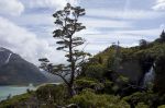 Inzwischen haben wir fast die Vegetationsgrenze erreicht. Über uns türmen sich nur schroffe, kahle Felsen… und die versperren und vollständig die Sicht auf unser Ziel. Wir sind schon länger als zwei Stunden unterwegs, haben uns abgekämpft und sehen nicht die geringsten Anzeichen von DEM Gletscher. Eine Handvoll anderer Gletscher, zwei andere Gletscherseen – das alles sehen wir klar und deutlich – es reicht uns aber nicht. So klettern wir weiter hoch, laufen über loses Geröll, kämpfen uns in einem Tal durch einen Wald aus Südbuchen, die wie ganz normale Südbuchen aussehen, nur im Liegen statt stehend wachsen müssen.