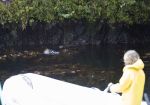 Als Vsevolod mit unserem Dinghy herum paddelt, entdeckt er nah am Ufer ein Otter-Pärchen. Eines der Tiere schwimmt direkt zur Outer Rim und reckt den Hals aus dem Wasser, um uns besser sehen zu können. Ab und zu taucht es ein, um sich zu verstecken. Das Wasser ist so klar, dass wir ihn auch unter Wasser schwimmend bestens sehen können.