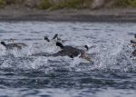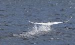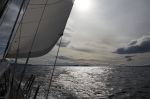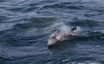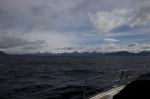 Ohne Zwischenfälle erreichen wir Canal Valdez, der uns zu einer breiten Bucht, dem Golfo del Almirante Montt, führt. Der Westwind freut sich über deren Ausdehnung und sorgt für eine anständige Welle. Mit bis zu 9 Knoten über Grund segeln wir an Wind in Richtung Puerto Natales. Einige Zeit lang begleiten uns Delfine. Das ist eine neue Art, die wir später als Weißbauch-Delfin identifizieren können. Sie sind ziemlich träge und reiten nicht auf den Bugwellen, sondern schwimmen ein wenig distanziert und zurückhaltend neben der Outer Rim.