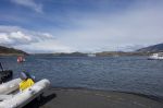 Nach einiger Zeit erreichen wir die Landabdeckung von zwei Inseln und die Welle wird weniger. Dafür können wir fast bis zur Ankunft in Puerto Natales segeln. Am früheren Nachmittag fällt der Anker vor der Stadt, leider am gegenüberliegenden Ufer. Um die Stadt zu erreichen, müssen wir eine längere, durch die Welle etwas unangenehme Dinghyfahrt auf uns nehmen.