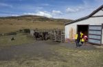 In den Regenpausen erscheint vor dem dunkelvioletten Himmel ein auserordentlich intensiver Regenbogen. Sogar der Regenbogen 2. Ordnung ist vollständig klar und deutlich zu sehen. Die Kinder können es kaum abwarten, bis der Wind sich legt. Sie haben erfahren, dass man auf der Estancia reiten kann. Seitdem hoffen und bangen sie, ob man es auch Kindern erlaubt. Als wir für die Großen einen Reittermin ausmachen, sind sie überglücklich. Bis jetzt durften sie bloß mit zahmen Ponys auf einem Ponyhof reiten, und hier gibt es gleich einen Ritt mit einem großen Pferd durch die Wildnis.