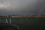 Der Wind lässt nicht auf sich warten. Zwei Tage lang bläst es so stark, dass unser Windgenerator vor lauter Existenzangst seine Arbeit verweigert. Und der ist nicht gerade zimperlich, unter 45 Knoten passiert ihm das nicht. Als eine besonders kräftige Bö die Outer Rim ordentlich auf die Seite legt, slippt unser Anker um einige Meter. Das können wir live am Plotter miterleben. Wir geben noch mehr Kette. Wirklich gefährlich ist das hier eher nicht. Das Wind ist ablandig, der Grund schlammig und die Bucht richtig groß. Da kann der Anker lange rutschen bis man irgendwo mit dem Kiel im Schlamm stecken bleibt.