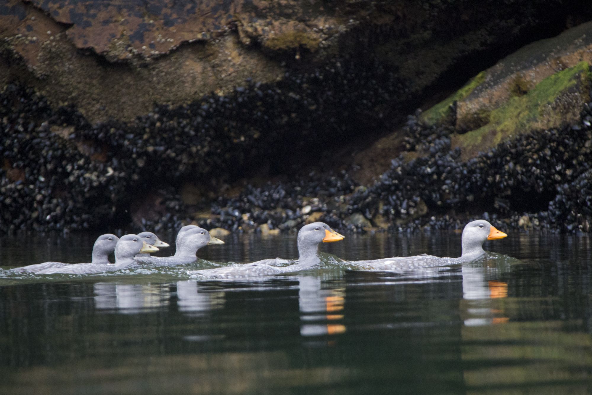 eine Familie von Langflügel-Dampfschiffenten
