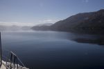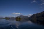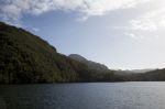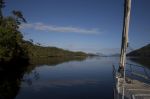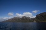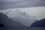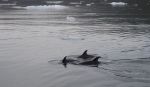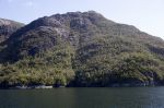 Nach einiger Zeit verlassen wir das Eisfeld und fahren aus dem Estero Peel heraus. Als erstes biegen wir in den Kanal Pitt ein. Es ist heute so kalt, dass sich ein leichter Hochnebelschleier gebildet hat. Daher scheint die Sonne trotz des wolkenlosen Himmels etwas gedämpft. Absolut spiegelglatt ist der Kanal. Auf der ganzen Strecke kommt uns kein anderes Schiff entgegen. Nur ab und zu gesellen sich Delfine zu uns und begleiten uns ein Stück des Weges. Schade, dass man vom Canal Pitt auch bei schönem Wetter keine schneebedeckten Berge des patagonischen Eisfeldes sieht. Dafür begleitet uns eine tolle Kulisse von steilen schroffen Felswänden mit zunehmender Vegetation bis teilweise zum Gipfel hoch.