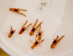 Natalya erkundet am Abend die Bucht per Dinghy in der Hoffnung, den vertrieben Seelöwen wieder zu finden. Ein feines Riffeln auf dem sonst spiegelglatten Wasser zieht ihre Aufmerksamkeit auf sich. Sie greift mit einer Hand blind hinein und fängt einen kleinen roten Krebs. Mit einem Ösfass werden gleich ein halbes Dutzend Tierchen zu Studienzwecken gefangen und später an Bord analysiert.
