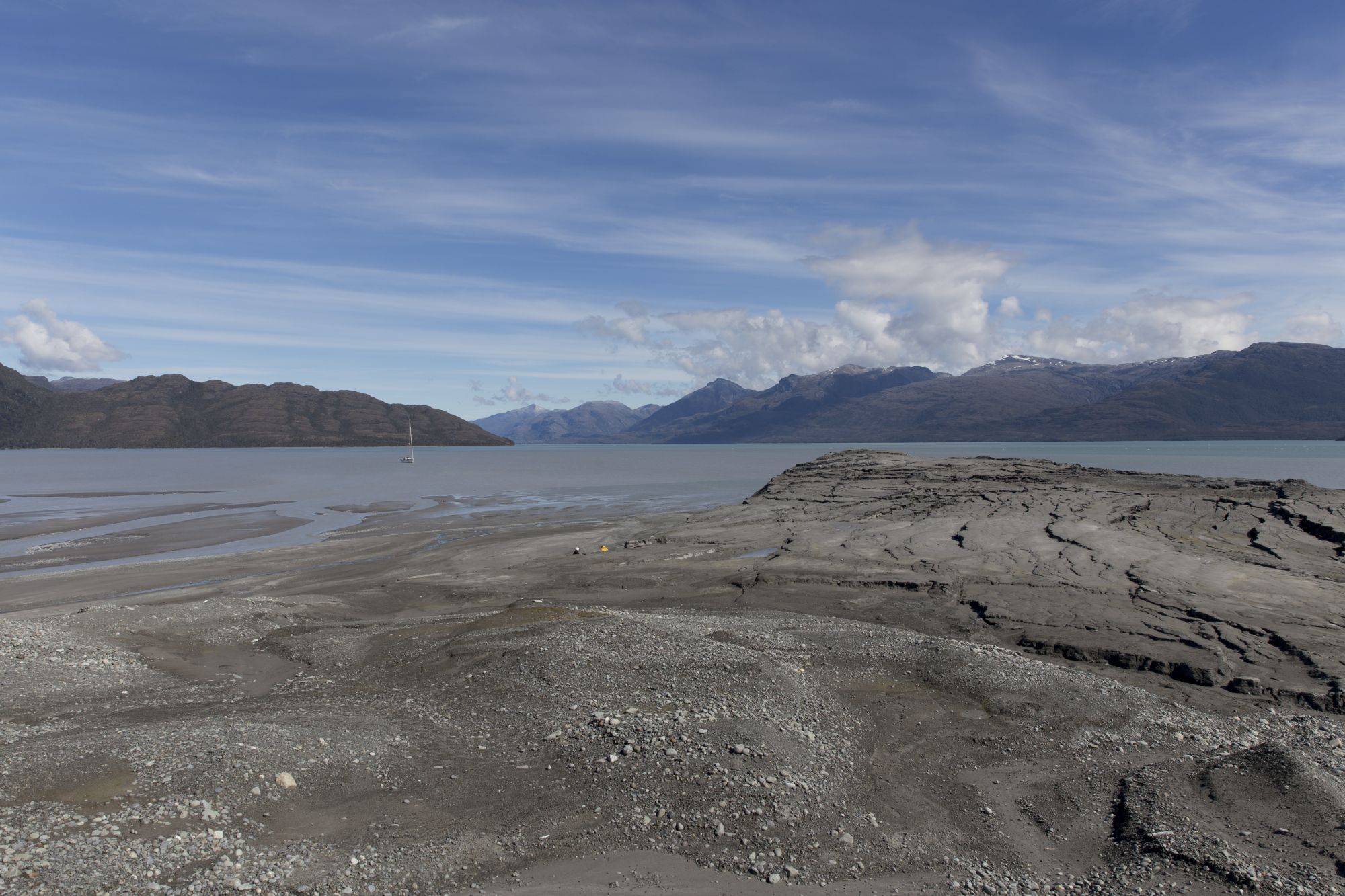 Blick über die Moräne zur Outer Rim und in den Estero Peel