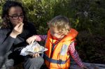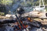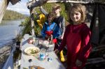 Das schöne Wetter motiviert uns dazu, wieder ein Lagerfeuer zu machen. Seit dem letzten Feuer sind schon einige Wochen vergangen. Thomas ist wegen des durch und durch nassen Holzes ziemlich skeptisch, aber mit ein wenig Hilfe (oder vielleicht doch etwas mehr) von ausrangiertem Diesel brennt das Feuer doch an. Die Kinder suchen im Wald noch mehr Holz. Arvid befragt alle, wer ihm beim Sägen helfen könnte. Sein Opfer muss dann neben einem dicken Baumstamm knien und geduldig gemeinsam mit ihm die Säge fleißig hin und her bewegen, bis das Stück tatsächlich abgesägt wird.