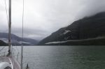 Heute stehen wir voller Erwartung früh auf… um einen vollständig bedeckten Himmel vorzufinden. Einen Tag mit 1.030 mbar erwartet man hier anders. Wir hatten gehofft, heute bei schönem Wetter in den Seno Iceberg mit seinem Gletscher fahren zu können. Eine kleine blaue Lücke in der Wolkendecke lässt uns aber auf eine Besserung hoffen. Wir lösen also die Leinen und fahren in den Seno unweit der Caleta Yvonne.