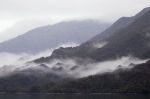 Die Hänge des Gletscherfjords sind bis zu den Gipfeln der Berge bewaldet. Tiefehängende weiße Wolken ziehen an den Bergflanken entlang und lassen den Wald magisch und verzaubert wirken. Würde hinter der nächsten Biegung Legolas auf einem weißen Pferd auftauchen, würde sich niemand wundern. Dagegen wundern wir uns über die "Hütte" (Bezeichnung im Revierführer) der Umweltschutzorganisation am Ende des Fjords, die alles anderes als klein und bescheiden ist.