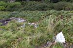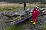 Für uns ist diese Caleta eine ziemliche Enttäuschung. Die Kinder haben gehört, dass dort am Ufer ein Walskelett liegt. Man stellt sich dabei einen einsam gestrandeten Wal vor, dessen vom Wind und Wetter trockene polierte Knochen in schöner ursprünglicher Anordnung am Ufer liegen. Stattdessen entdecken wir als erstes Überreste eines relativ frischen Walkadavers. Unter den frischen Knochen liegen noch Haut und Blubber. Der faulige Geruch des Todes und der Zersetzung macht sich breit. Das Gras rundherum ist fest getrampelt, Überreste von Tüten, Lebensmittelverpackungen, Bierdosen, Weinflaschen sind breit verstreut. Ganz offensichtlich waren hier Menschen an Werk.