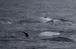 Wir dürfen den Walen beim Jagen zuschauen. Mehrere Tiere schwimmen im Kreis. Dabei tauchen sie immer wieder auf. Leider ist weder Schnauze noch die Fluke zu sehen, so dass wir anfangs nicht eindeutig bestimmen können, um welche Art es sich hier handelt – es waren aber vermutlich wieder Seiwale. Kräftig ausgeatmete Luft bildet unter Wasser unzählige Bläschen und erschreckt die mitten im Kreis befindlichen gejagten Fische. Den Schutz des Schwarms suchend schließen sich die Beutetiere immer enger zusammen. Bei der nächsten Runde ziehen die Wale einen noch engeren Kreis. Wenn die gewünschte Dichte erreicht ist, müssen sie nur noch das Maul aufzureißen und zu warten, bis genug Nahrung darin gelandet ist. Einige Albatrosse gesellen sich dazu, um an der reichen Beute Anteil zu haben. Man kann nur raten, was unter Wasser passiert und wer an dem Festmahl noch beteiligt ist. Ein Seebär springt plötzlich ganz aus dem Wasser. Eine ganze Weile sehen wir dem Schauspiel in unmittelbarer Nähe der Outer Rim zu, dann drehen wir ab und halten auf den Pazifik zu.